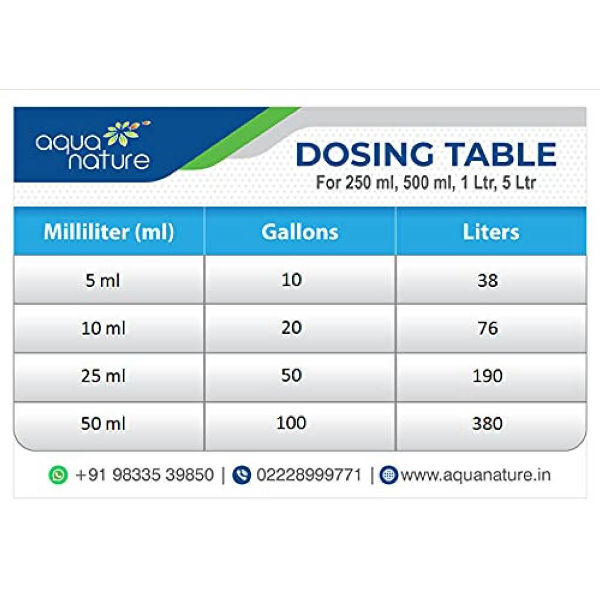 - Push 4 time Equal to (5 ml) per 10 US gallons (38 L) of aquarium.